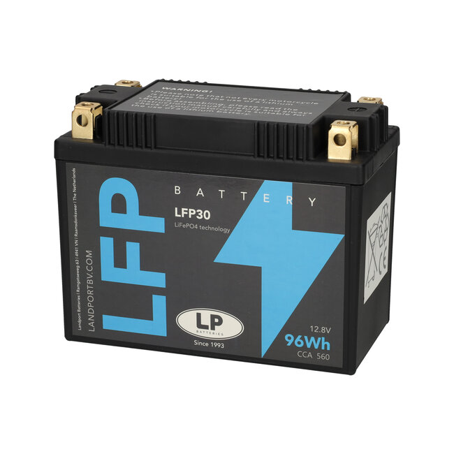 De LFP30 12 volt 96,0 Wh Lithium LiFePO4 startaccu is van het merk Landport (LP). Deze unieke accu is in het bezit van 4 accupolen zodat u altijd een linkse en rechtse + / - heeft en daardoor heel veelzijdig toepasbaar is. Deze super lichtgewicht weegt slechts 1/3 van een normale accu en kan in elke positie gemonteerd worden en wordt geleverd met handige passtukjes. Voor elke situatie een passende oplossing. Bij Harley Davidson motoren raden wij het gebruik van een lithium accu's af (i.v.m. hitte en trillingen). Deze accu is vergelijkbaar met een 24,0 / 30,0 ah motoraccu.